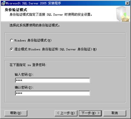 9. 選擇混合模式,在下方SA登陸密碼中輸入密碼,此密碼錄入后必須記著,在之后的操作中要使用。