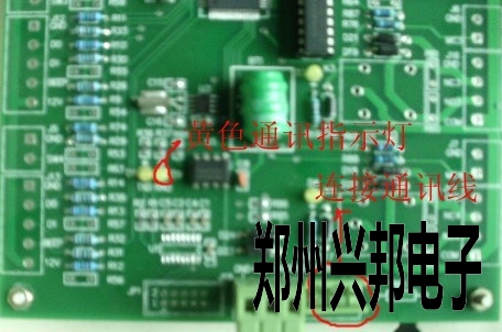 用通訊線將主控器和電腦連接好后,要注意通訊線的正負(fù)極不能接反,如果如圖四所示位置的黃色指示燈常亮的話說明通訊線路沒有連接正確,如果通訊線路連接正常的話,黃色指示燈是處在熄滅狀態(tài)的。(如圖四所示:)