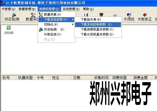 具體操作步驟為:將消費機連接到通訊線上,打開一卡通系統確認機器通訊正常然后選擇--消費機管理--下載系統參數--下載系統控制參數--下載消費機基本參數或者下載水控機基本參數(如下圖所示)