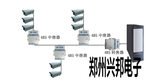 在某智能樓宇監(jiān)控項目當中,每個樓層都有多個攝像頭對各個地點進行監(jiān)控,利用485總線對攝像頭進行控制,施工單位在施工過程當中發(fā)現(xiàn),如果按照原先的485總線型的拓撲結(jié)構(gòu)的話,485總線主干線必須要經(jīng)過每一個攝像頭,這樣將導致485線的距離非常的長,而且在后期的維護當中,由于所有的攝像頭都是經(jīng)過一個485總線,如果在485總線上有一個攝像頭出現(xiàn)問題,有可能導致整個系統(tǒng)不能運行。他們使用485中繼器將原先的485總線型的拓撲結(jié)構(gòu)改造成樹型的拓撲結(jié)構(gòu),大大簡化了施工,并且極其方便后期的維護。極大的節(jié)省了費用。