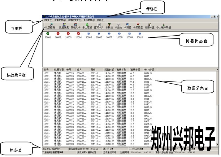 4)數據采集窗口用于查看數據的采集情況,在進行消費的時候,最好不要對收費機進行數據采集,我們不建議邊消費邊采集數據。