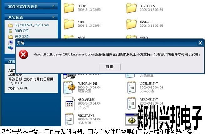 只能安裝客戶端,不能安裝服務器。而我們軟件所需要的是客戶端和服務器都得有。