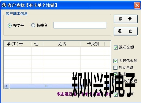 打開軟件 制卡中心-卡管理 在空白處鼠標右擊,選擇有卡單個注銷或者無卡單個注銷,輸入學號或者姓名查詢出人員信息后,鼠標雙擊查詢出的人員信息,即可完成注銷。