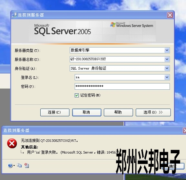 公司開發的can軟件,是用在水控機,售飯機上的,它的功能在不斷的完善,使數據顯示越來越簡單明了,想看數據明細記錄,可以選擇明細查詢,而如果想看總記錄,可以選擇統計查詢。這些數據全部都存儲在數據庫2005中,當用戶登錄數據庫出現如下錯誤,如何解決,如圖所示: