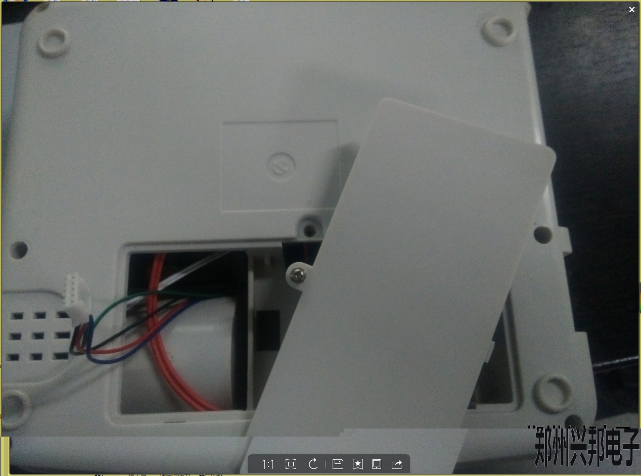 如圖1-1所示,打開機(jī)器背部電池蓋,小心去除小票打印機(jī)上邊插著的5p線。把線插到做好的升級工具線的5p插座上即可。