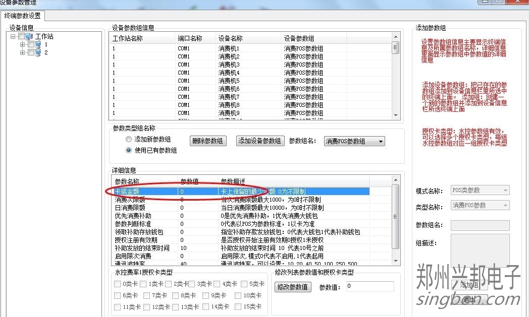 我們的互聯網一卡通食堂售飯機,客戶在用的時想讓卡里保留10元不能消費,那么如何設置卡底金呢?